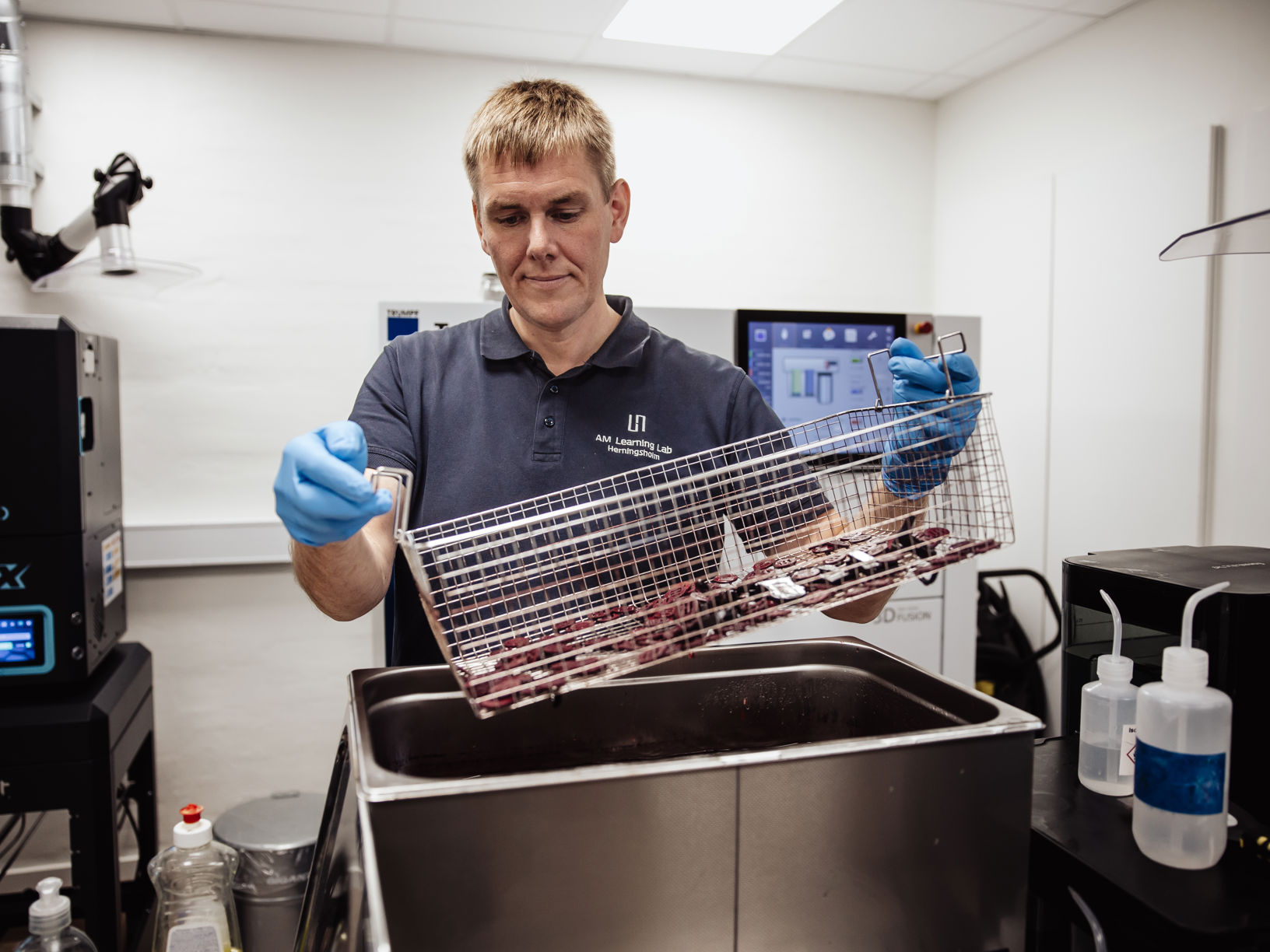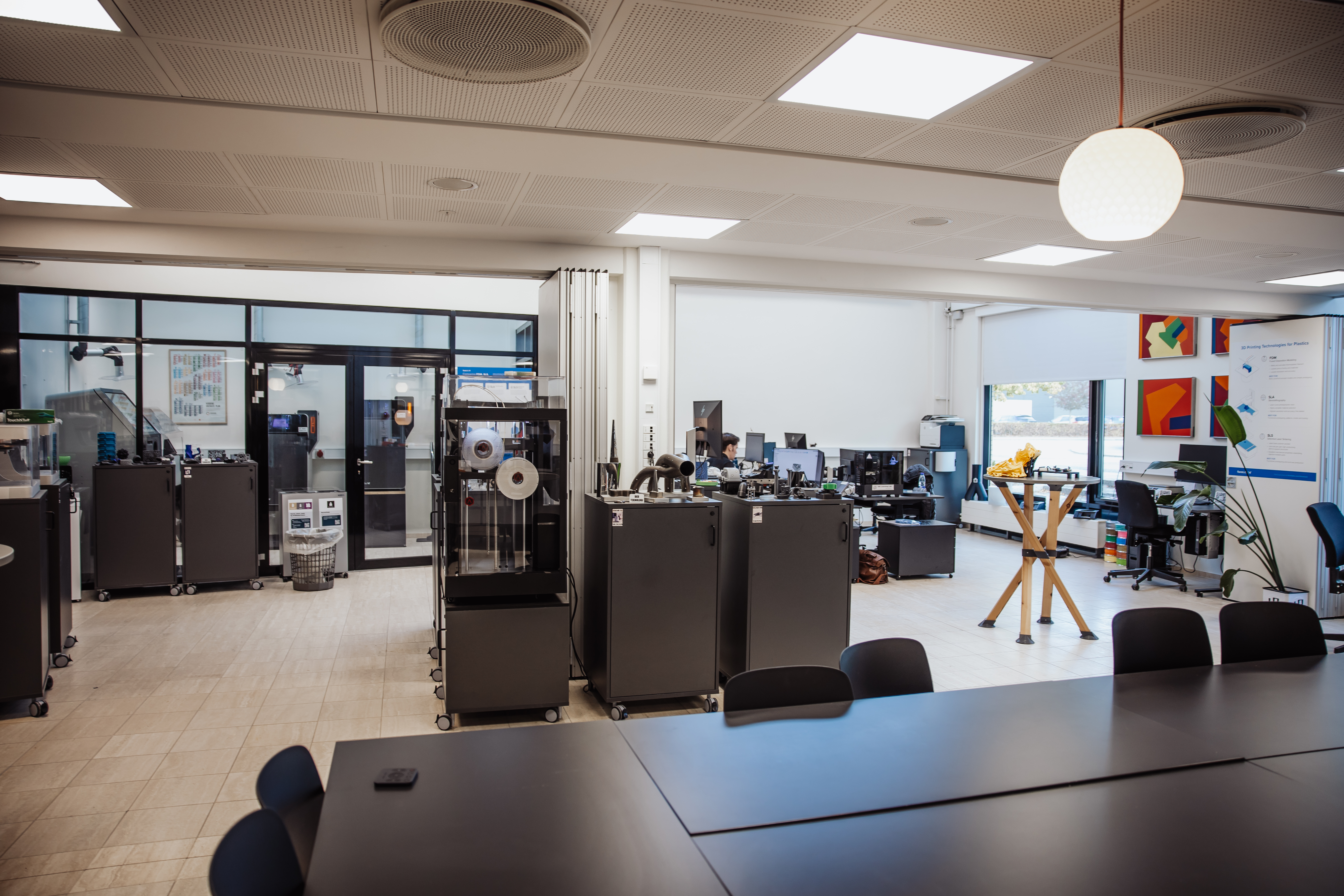 AM Learning Lab råder over avanceret udstyr inden for FDM, SLA, SLS, LPBF, 3D-scanning, efterbehandling og materialegenanvendelse.